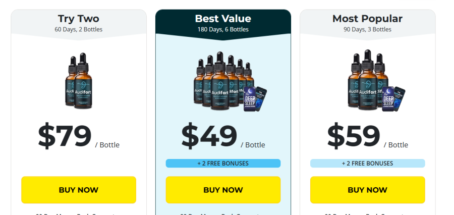 Audifort’s website strongly encourages customers to buy larger bundles rather than a single bottle.