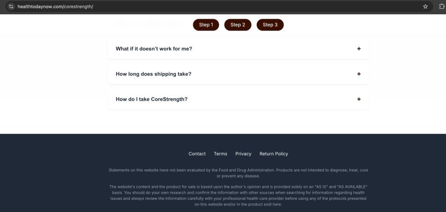 Another point worth noting is the trust level of the websites associated with the product. Based on publicly available information, De-Reviews.com has assigned Healthtodaynow.com and Corestrength.systeme.io a TrustScore of around 49 out of 100. A score at this level may suggest moderate confidence and can reflect concerns related to transparency, reliability, or overall user experience.
