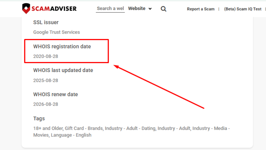 This means the website has been online for several years, which can sometimes indicate stability. Scam sites often disappear quickly, while long-running domains may seem more trustworthy.
