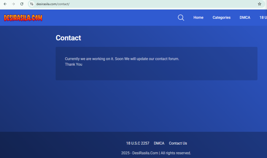 One unusual detail on DesiRasila.com is its unfinished contact page.