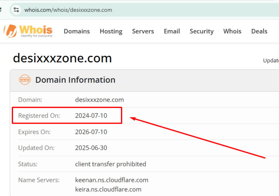 WHOIS records indicate that Desixxxzone.com was registered on July 10, 2024, giving it just under two years of operating history. While this is slightly older than some newer adult streaming domains, it still lacks a long track record or reputation data.