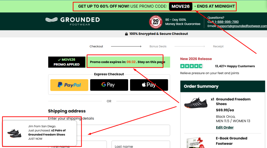Grounded Footwear is not an outright scam—it does deliver products. However, the gap between marketing and reality is significant. The use of pressure tactics, unverifiable claims, and ongoing customer complaints makes this a risky purchase.