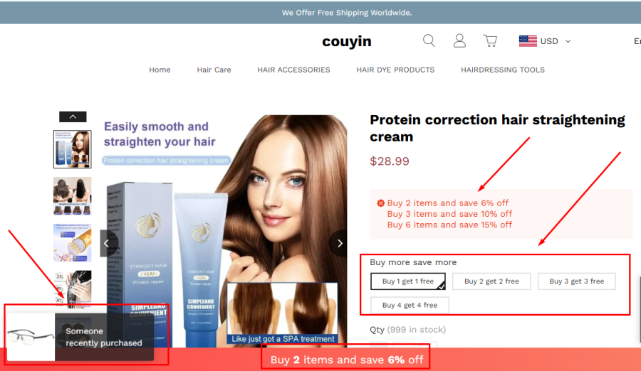 Extravagante Preisnachlässe sind der Köder, mit dem impulsive Käufer angelockt werden, die ein Schnäppchen lieben. Couyin.com bietet "2 kaufen und 6 % sparen", "3 kaufen und 10 % sparen" und sogar "2 kaufen und 2 gratis" oder "4 kaufen und 4 gratis". Wenn ein Geschäft anbietet, die Hälfte seines Lagerbestands umsonst zu verschenken, handelt es sich in der Regel um minderwertige Produkte, die für wenig Geld aus Massenproduktionsbetrieben bezogen werden.