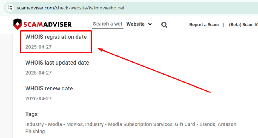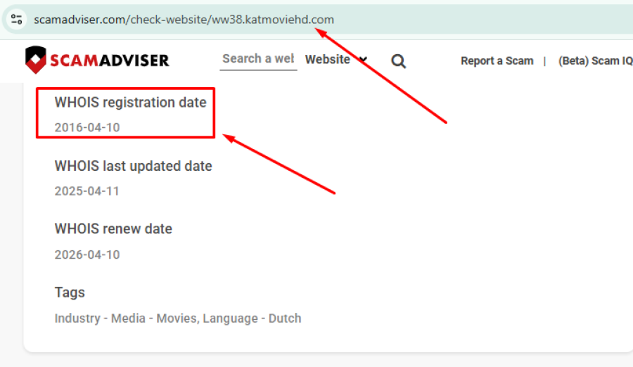 WHOIS records show that Katmovieshd.net was registered on April 27, 2025, making it a relatively new domain. In contrast, Katmoviehd.com dates back to 2016, suggesting it has existed much longer online.
