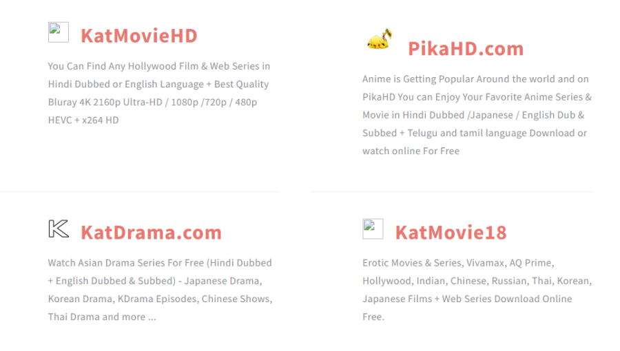 KatMovieHD appears connected to a broader network of similar streaming platforms, including KatDrama.com, KatMovie18, PikaHD.com, and KatMovie4K. Networks like these often operate through multiple domains so traffic can shift quickly if one site is blocked or removed.