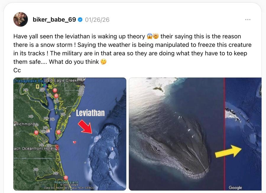 According to the post, a massive sea creature, the legendary Leviathan, is supposedly “waking up”, and recent unusual winter storms are part of efforts to contain it. The message even implies that military activity in the region is linked to a secret operation designed to keep the creature and the public safe. The combination of dramatic imagery, extreme weather events, and alleged military involvement makes the theory both intriguing and alarming for many viewers, fueling curiosity and online discussion.