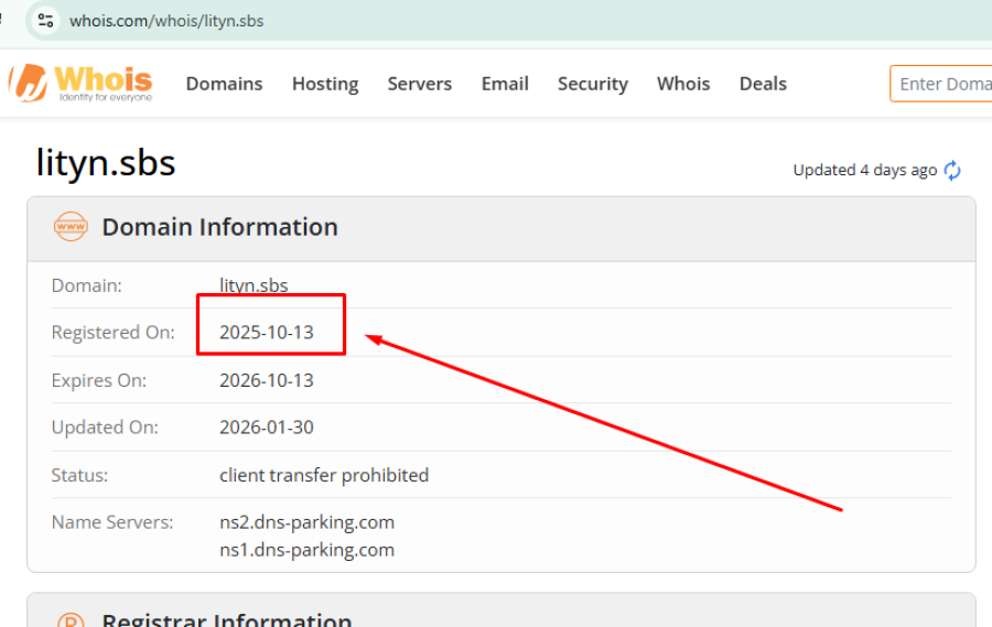 WHOIS records show that Lityn.sbs was registered on October 13, 2025, while Zirak.fun was registered earlier on March 15, 2025. Both domains are relatively new, which is often a warning sign when evaluating unfamiliar financial websites.