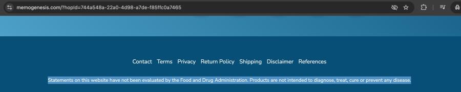 "Statements on this website have not been evaluated by the Food and Drug Administration. Products are not intended to diagnose, treat, cure or prevent any disease."