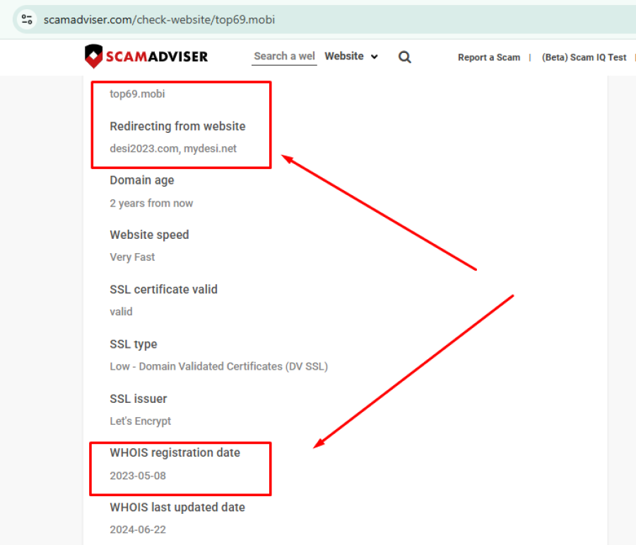 MyDesi.net has been active since 2021, while Top69.mobi appeared later in 2023. Other linked domains, like Lolpol2.com have shown up even more recently. Instead of growing under one stable address, the network keeps expanding sideways.
